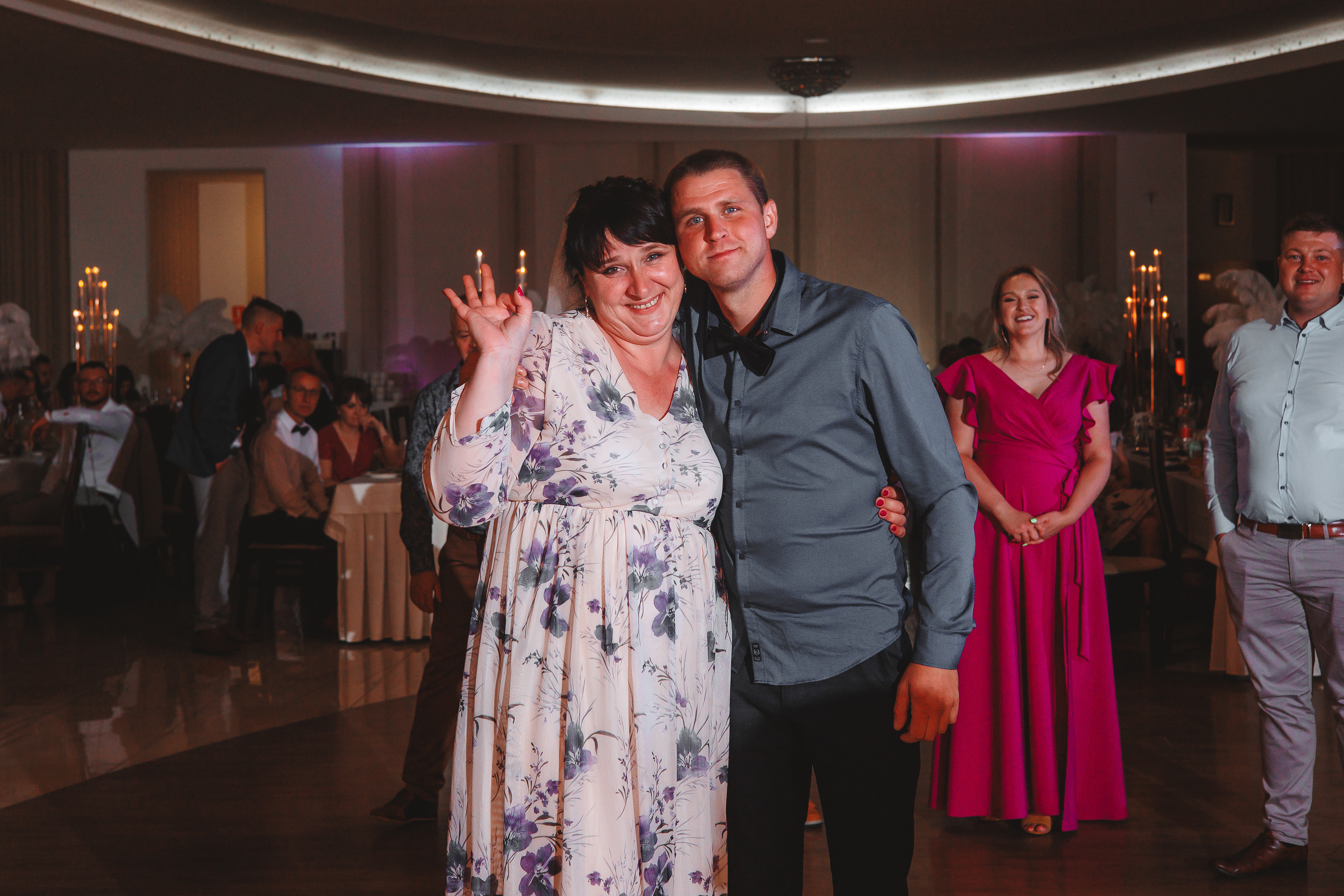Po uroczystości w kościele przyszedł czas na przyjęcie weselne. Sala balowa Promessa okazała się idealnym miejscem na to wyjątkowe wydarzenie. Styl glamour dominował na każdym kroku. Od błyszczących dekoracji po kryształowe świeczniki, wszystko wskazywało na to, że to wyjątkowa noc.