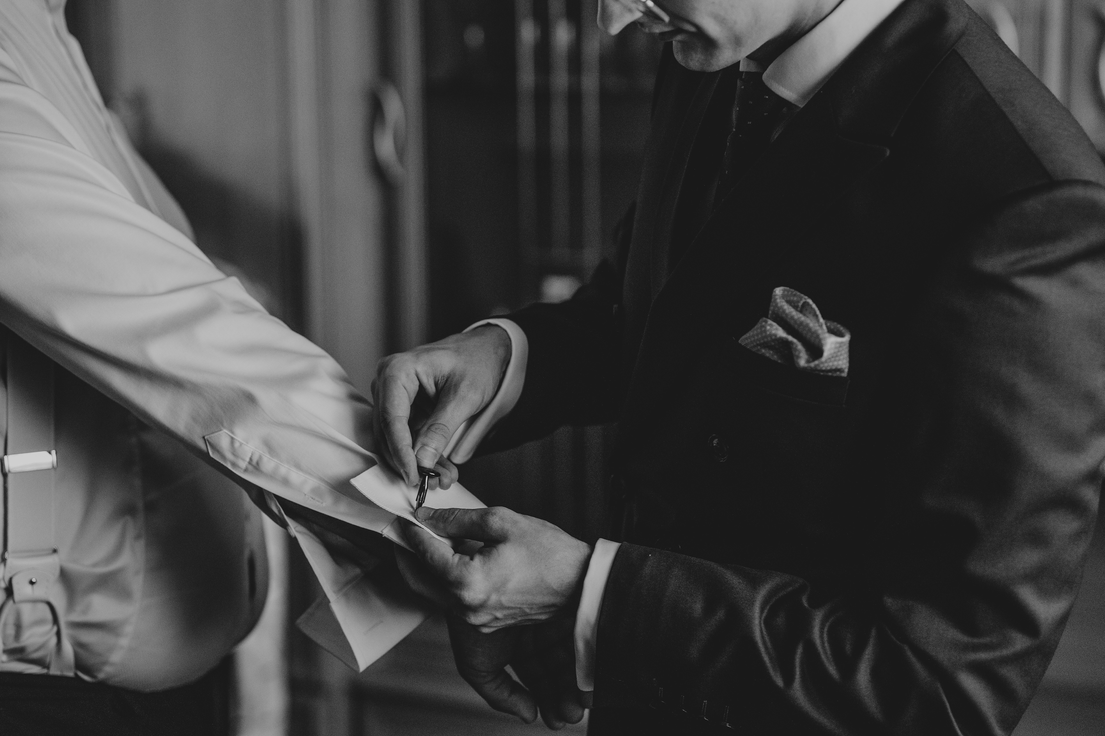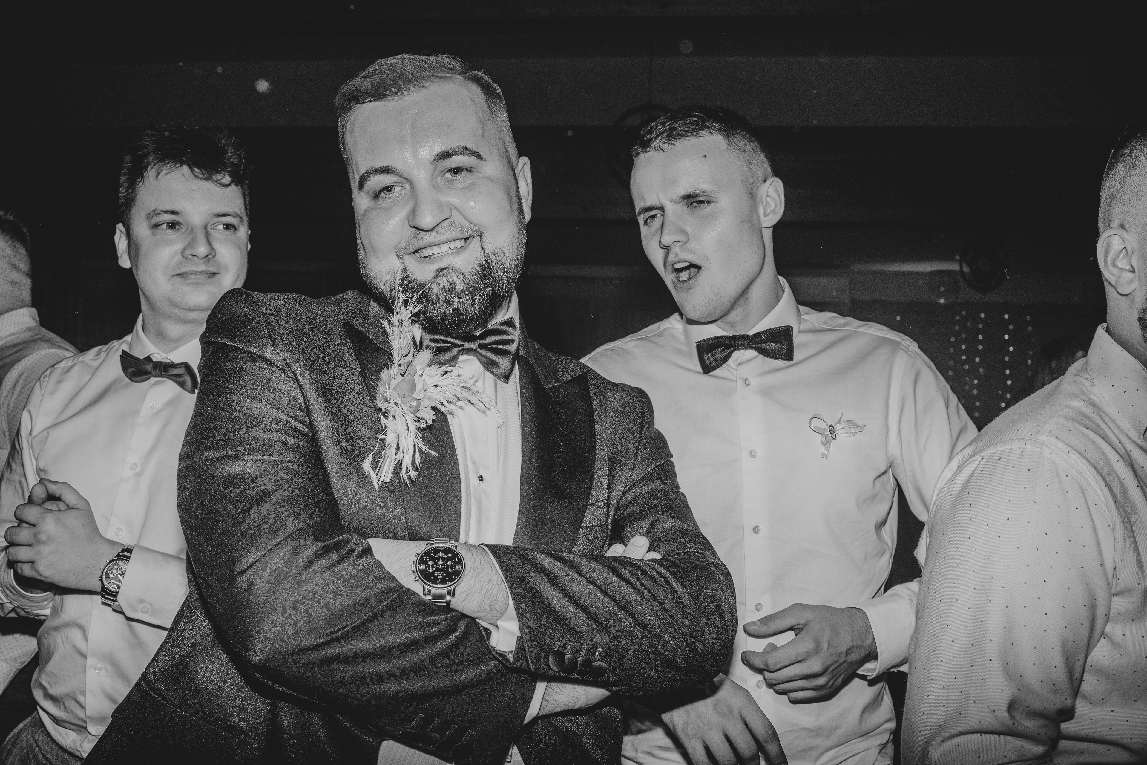 Gdy pojawił się pomysł na cały reportaż w czerni i bieli, wiedziałem, że para, która zdecyduje się na to, także kocha fotografię w tych kolorach. Jest to trudne ponieważ kojarzymy te barwy ze smutkiem, nie z radością. Dlatego też zdecydowałem się na taki reportaż, będąc drugim fotografem. To dało mi swobodę działania, inną perspektywę, pracę z różnymi ustawieniami, wysokim ISO czy kierowaniem lampy błyskowej w inny sposób.