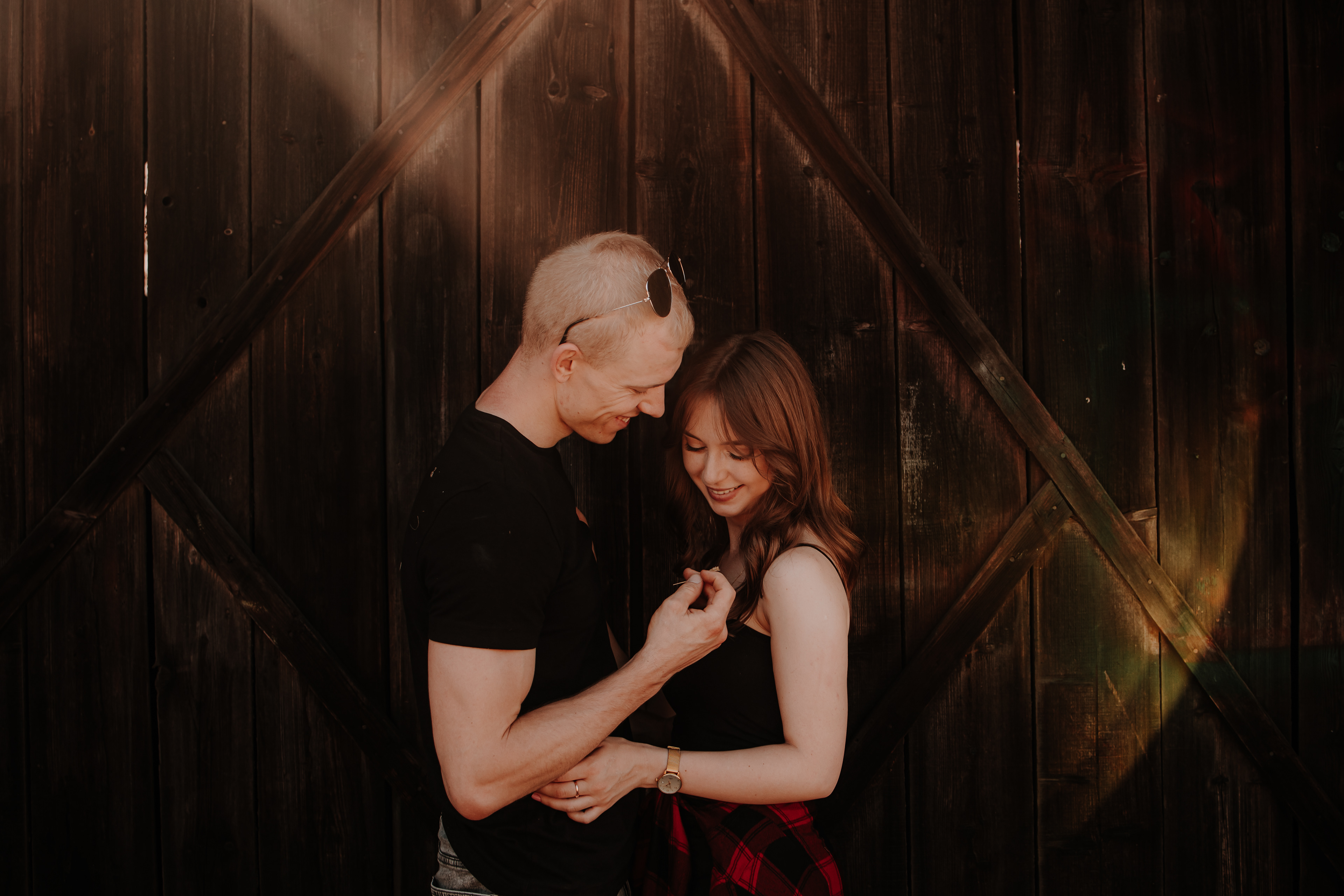 Kiedy przeglądałem profile na Instagramie w poszukiwaniu odpowiedniej pary do moich fotograficznych projektów, natknąłem się na Beatę i Kacpra. Po kilku wymianach wiadomości postanowiłem zapytać Beatę, czy nie mieliby ochoty na niecodzienną sesję zdjęciową. Zaproponowałem kilka pomysłów, ale jeden z nich skradł ich serca – SESJA MIŁOSNA W STODOLE.