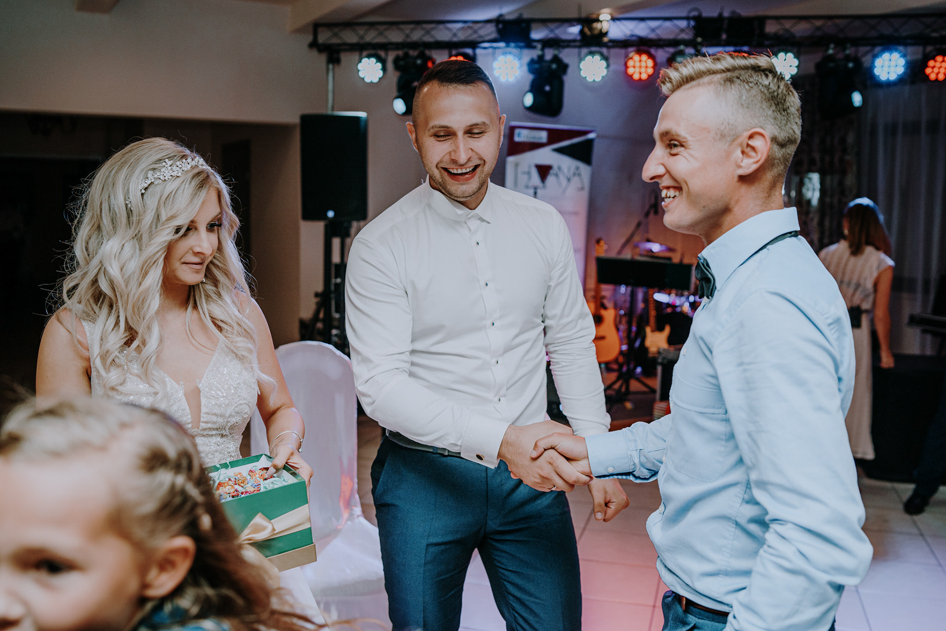 Po przyjeździe pod sale weselną, Państwo młodzi zostali powitani przez czekających na nich gości. Tradycyjne przywitanie chlebem i solą, po czym wejście na piękną salę weselną 'Paradis’.