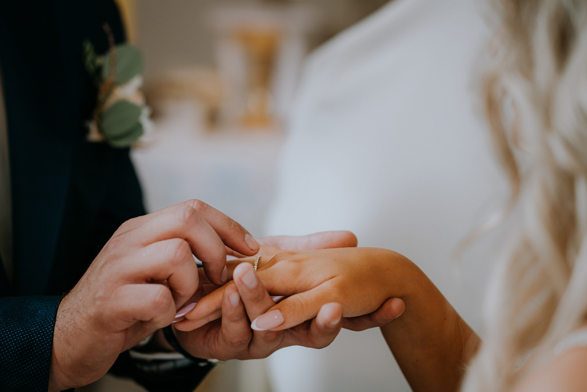 Moment przysięgi, zakładania obrączek oraz obserwowania cudownych spojrzeń rodziców. Słuchanie oprawy muzycznej.