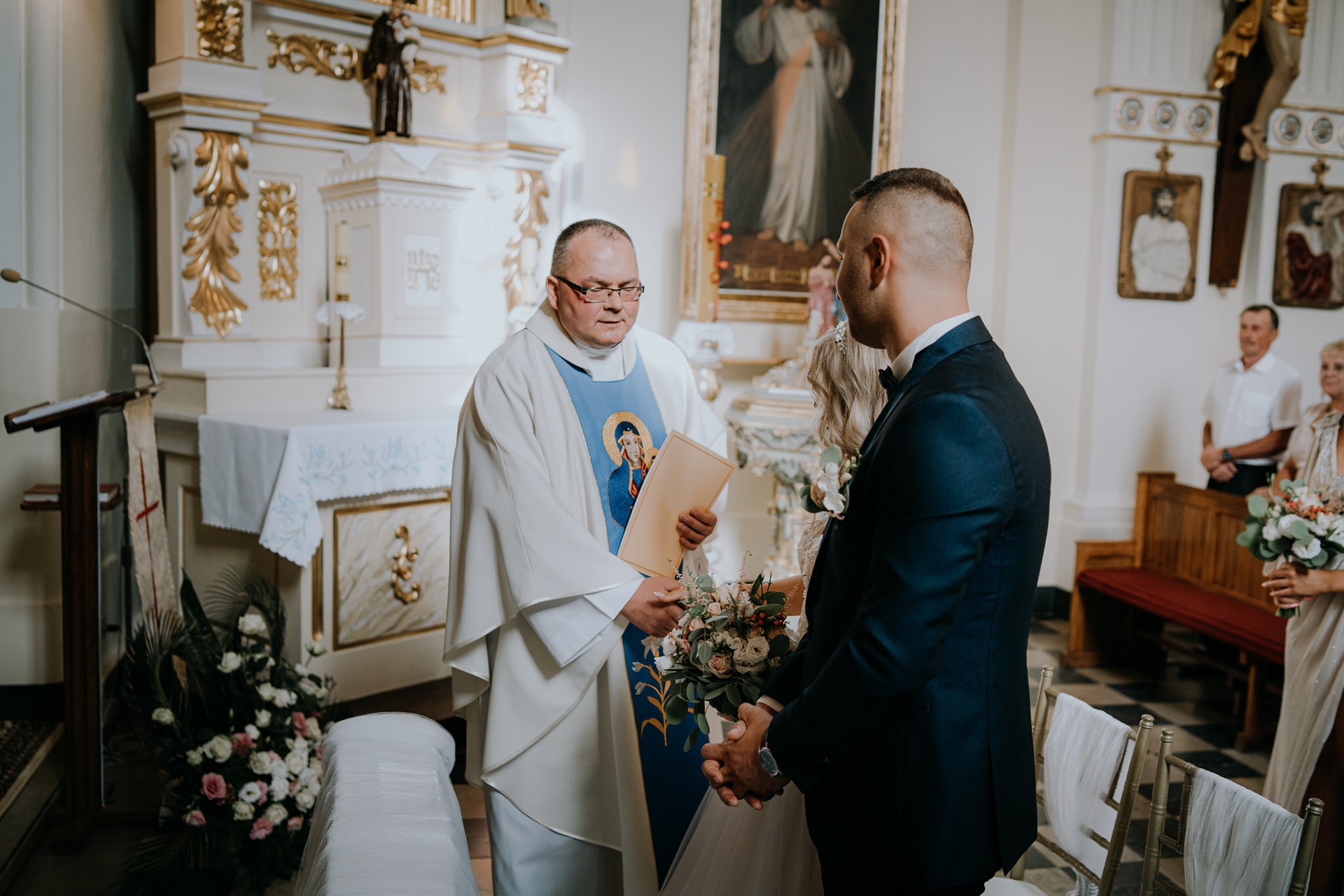 Piękne chwile do fotografii były od samego początku. Wzruszenia podczas czytania ślubnego, kazania oraz przysięgi wielokrotnie wypełniały kadr.